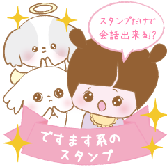 新たに天使ワン子のホタルが加わりました!このスタンプだけで会話ができちゃう「ですます系」のスタンプです。
