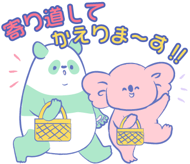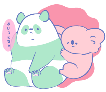 あめ(キャンディー)のような頭をしたコアラのあめちゃんと、仲良しのパンダのささきさんの日常用会話スタンプ。